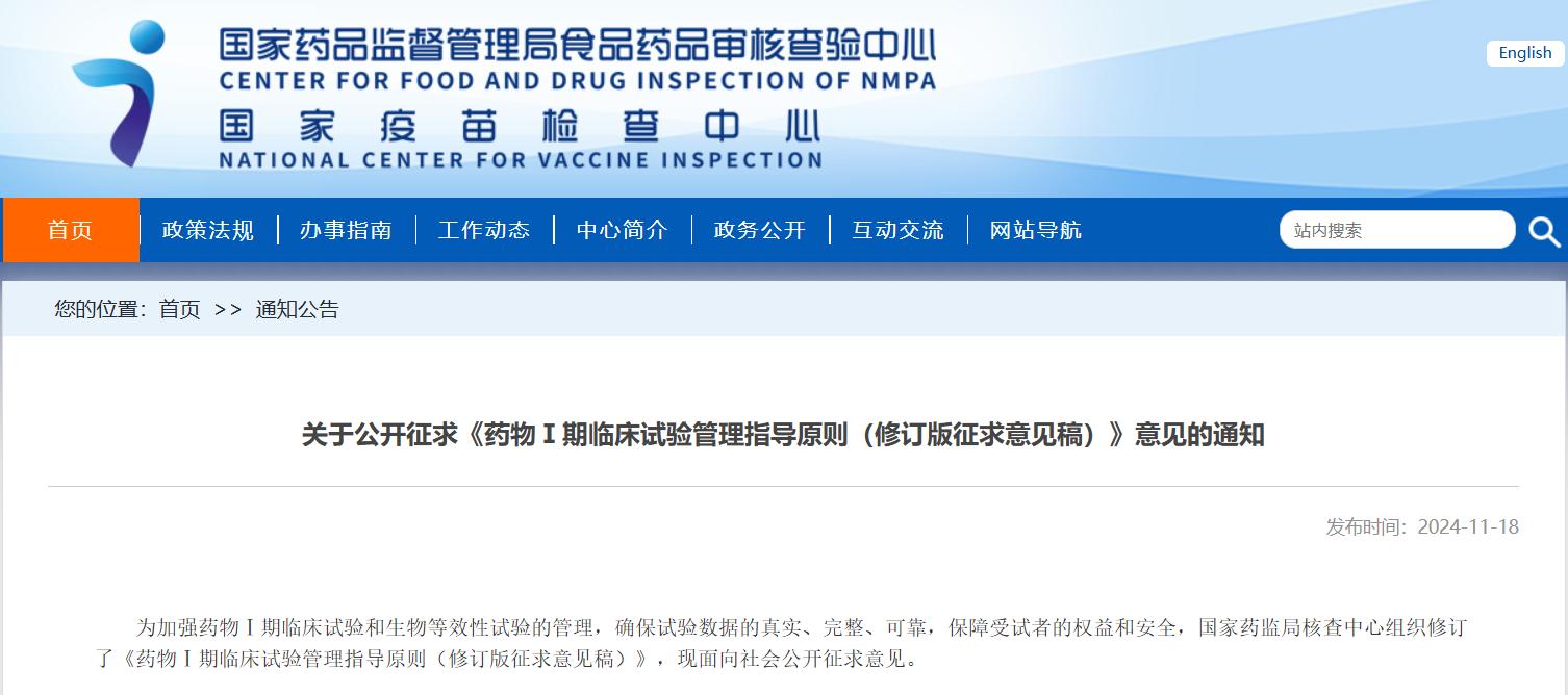 關(guān)于公開征求《藥物Ⅰ期臨床試驗(yàn)管理指導(dǎo)原則(修訂版征求意見稿)》意見的通知