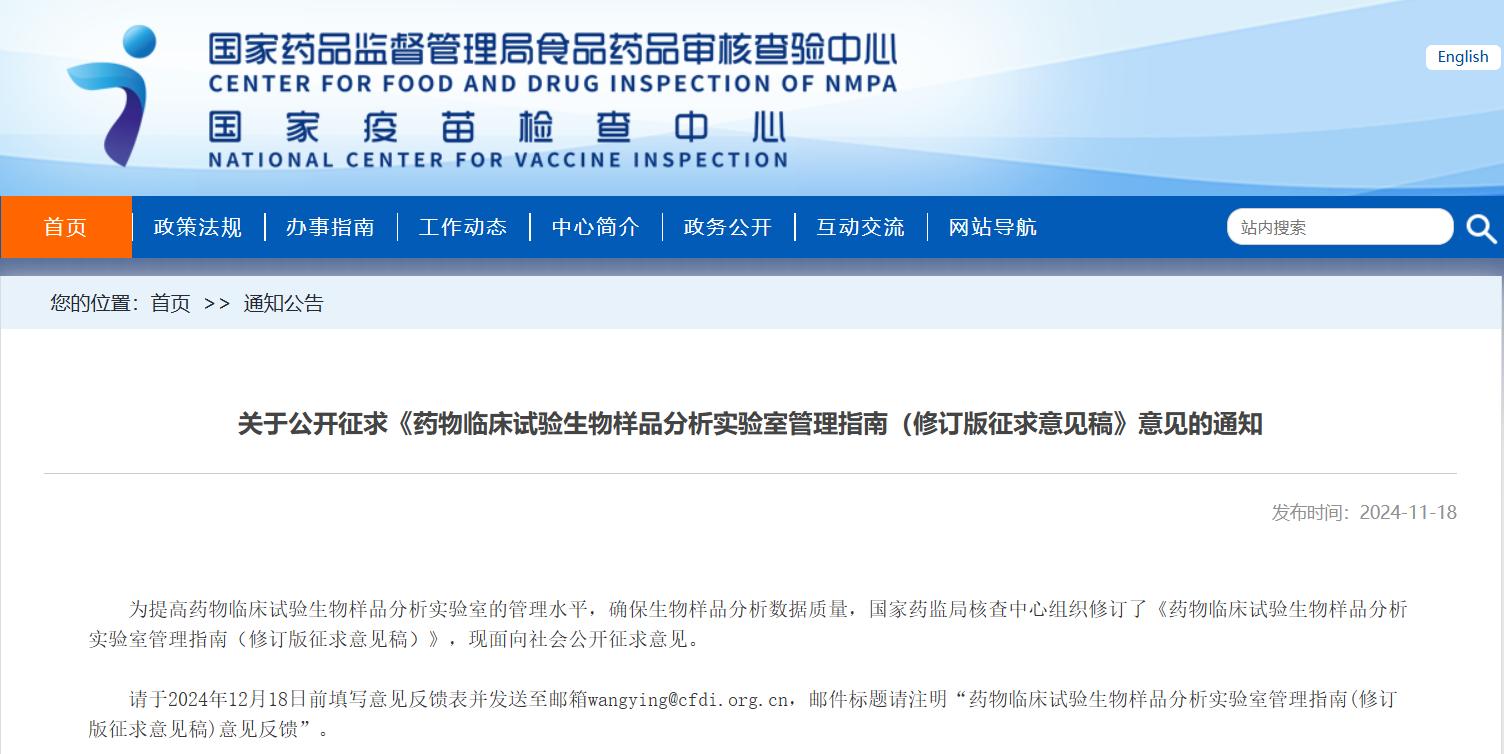 關(guān)于公開征求《藥物臨床試驗(yàn)生物樣品分析實(shí)驗(yàn)室管理指南(修訂版征求意見稿)》意見的通知