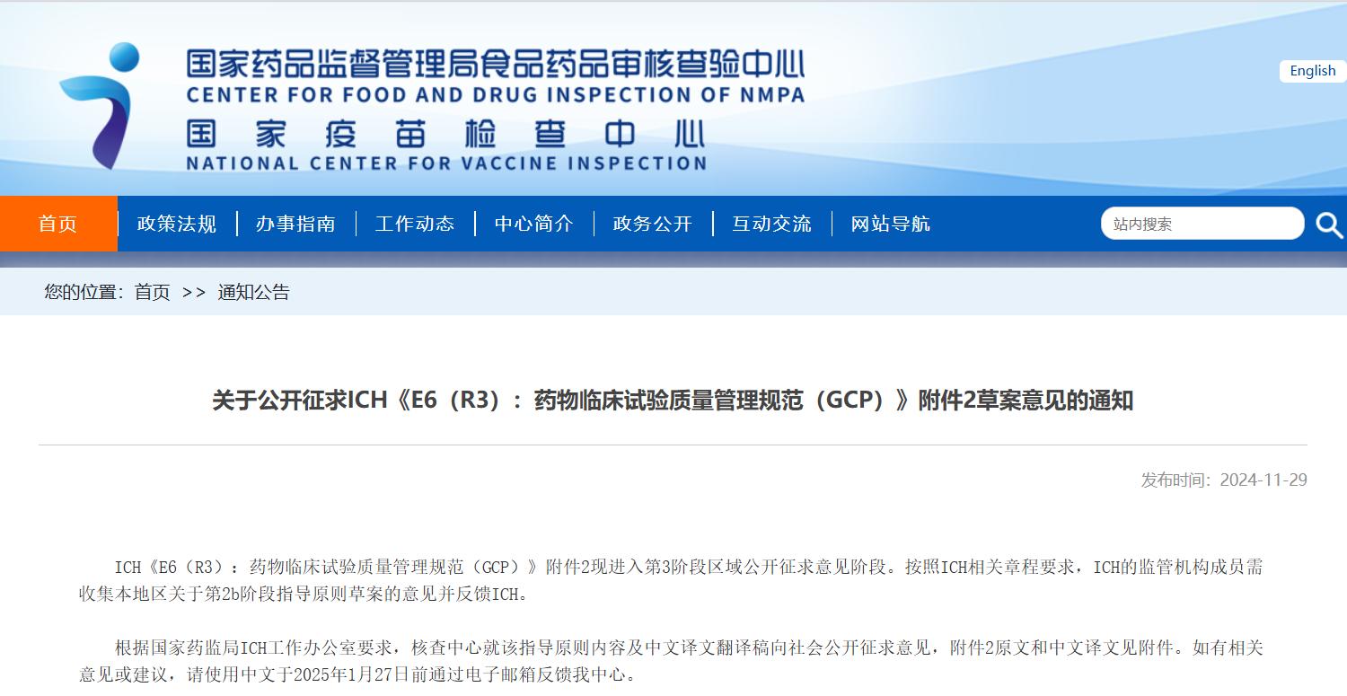 關于公開征求ICH《E6(R3):藥物臨床試驗質量管理規(guī)范(GCP)》附件2草案意見的通知