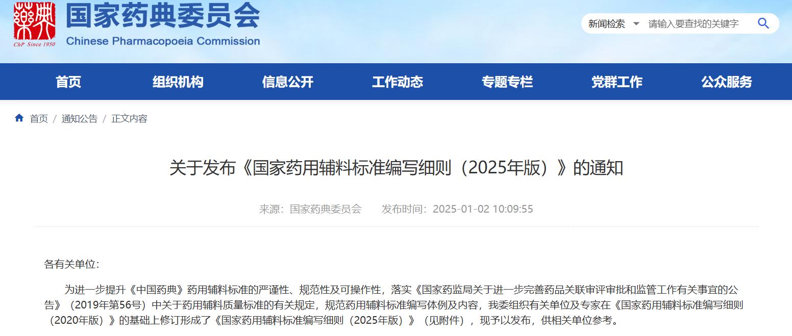關(guān)于發(fā)布《國家藥用輔料標準編寫細則(2025年版)》的通知