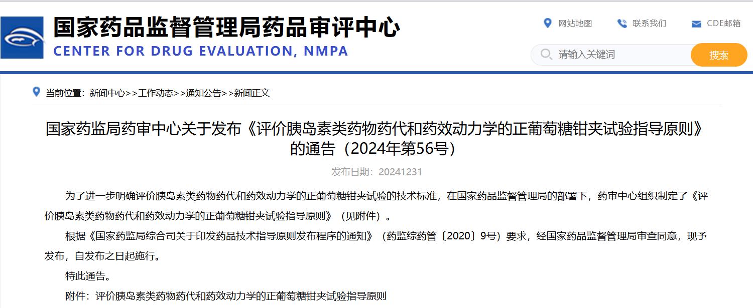 國家藥監(jiān)局藥審中心關(guān)于發(fā)布《評價胰島素類藥物藥代和藥效動力學的正葡萄糖鉗夾試驗指導原則》的通告(2024年第56號)