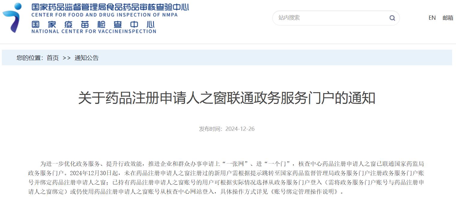 關(guān)于藥品注冊申請人之窗聯(lián)通政務(wù)服務(wù)門戶的通知