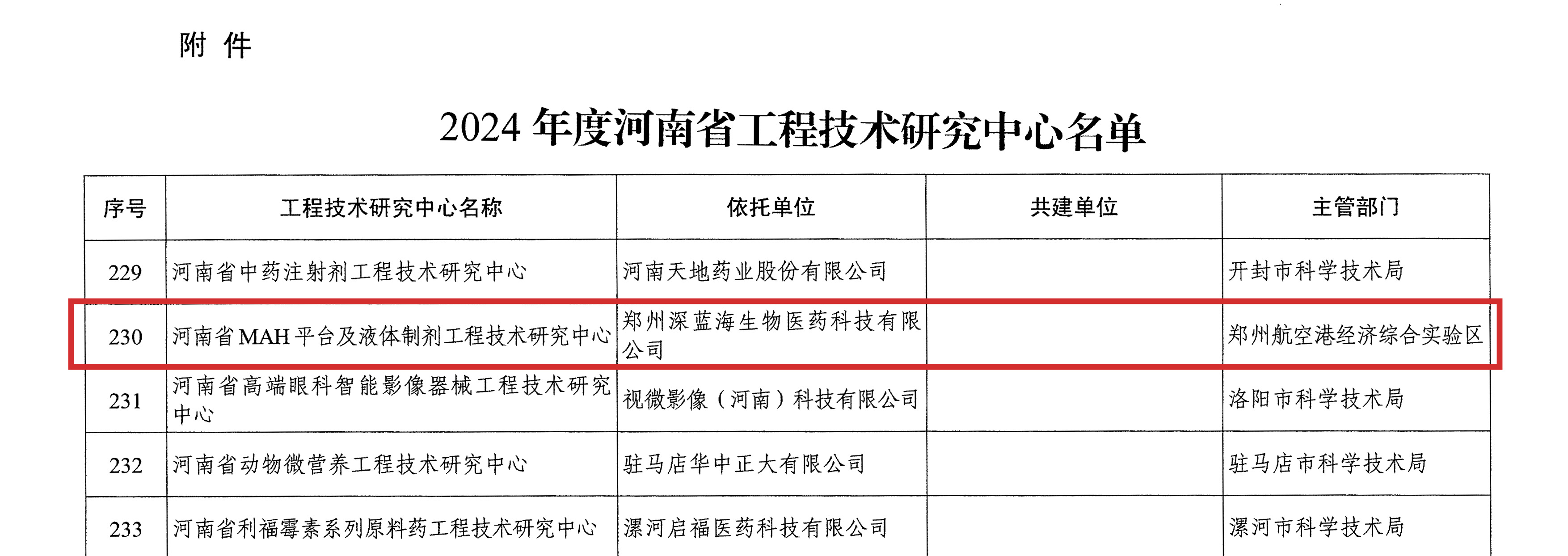 喜報(bào) | 新領(lǐng)先·深藍(lán)海(鄭州)獲批河南省MAH平臺(tái)及液體制劑工程技術(shù)研究中心