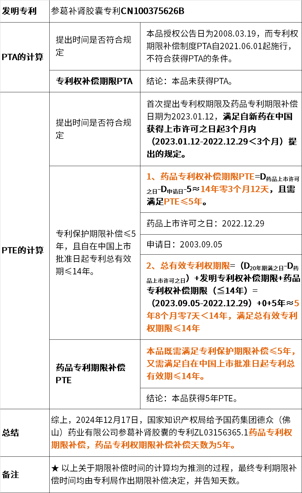 下面通過案例來更深入了解專利權(quán)期限補(bǔ)償,以下為國(guó)知局2024.12.27發(fā)布的獲得PTE案例。