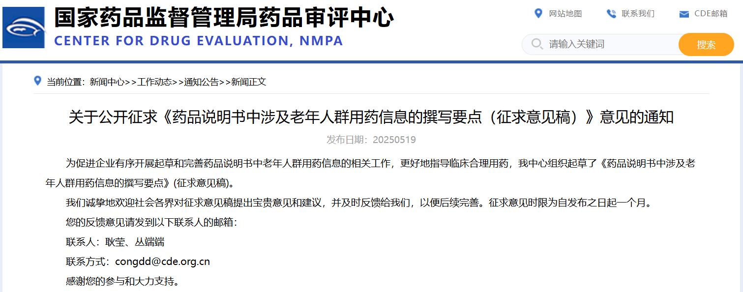 為促進(jìn)企業(yè)有序開(kāi)展起草和完善藥品說(shuō)明書(shū)中老年人群用藥信息的相關(guān)工作,更好地指導(dǎo)臨床合理用藥,CDE組織起草了《藥品說(shuō)明書(shū)中涉及老年人群用藥信息的撰寫(xiě)要點(diǎn)》(征求意見(jiàn)稿)。