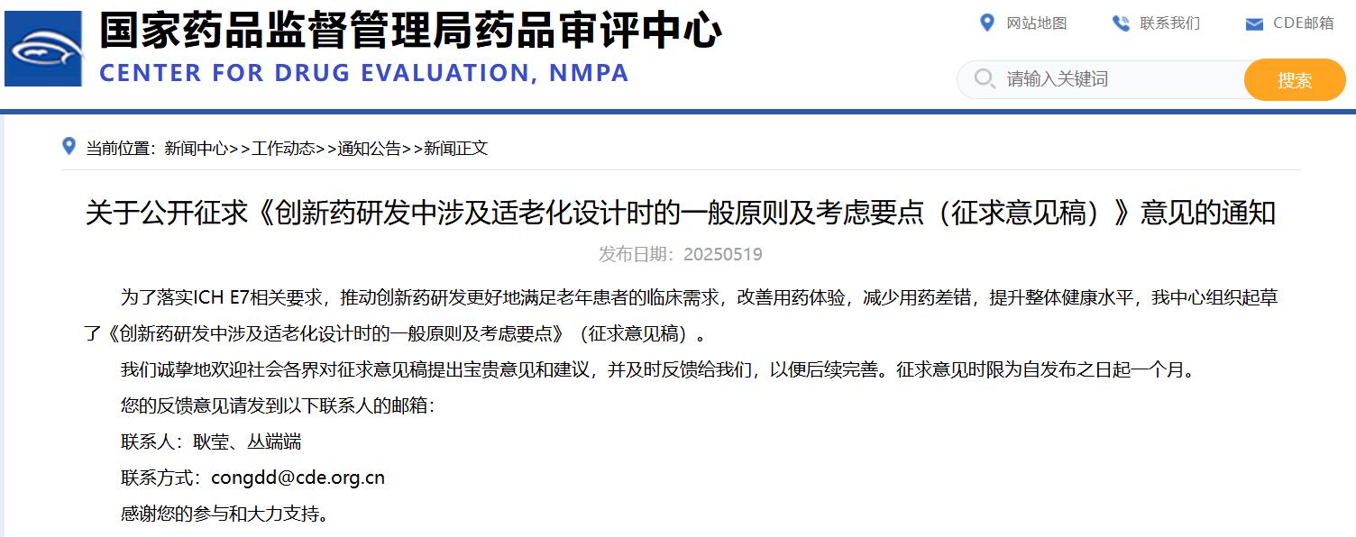 關(guān)于公開(kāi)征求《創(chuàng)新藥研發(fā)中涉及適老化設(shè)計(jì)時(shí)的一般原則及考慮要點(diǎn)(征求意見(jiàn)稿)》意見(jiàn)的通知