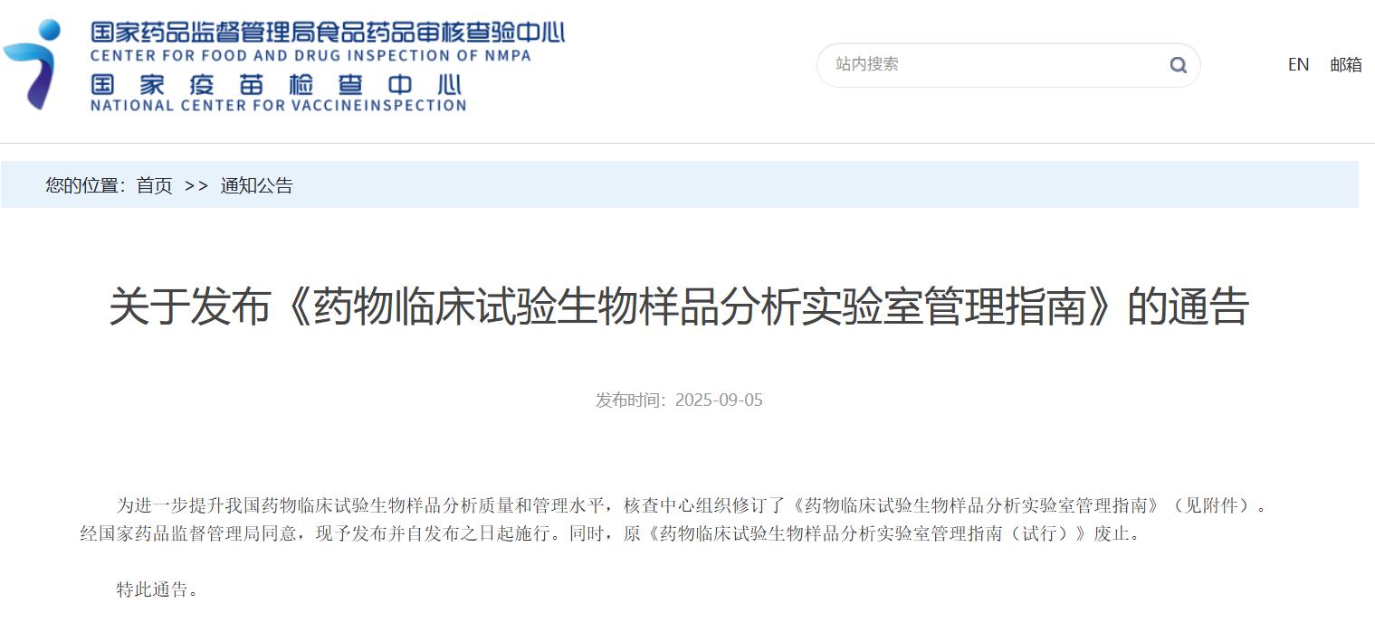 關(guān)于發(fā)布《藥物臨床試驗(yàn)生物樣品分析實(shí)驗(yàn)室管理指南》的通告