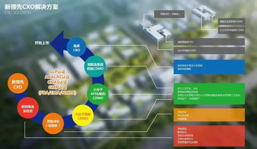 在這種背景下,新領(lǐng)先開(kāi)創(chuàng)了行業(yè)獨(dú)特的CXO一體化服務(wù)模式,面向全球提供從藥物研發(fā)臨床前CRO、臨床CRO至創(chuàng)制生產(chǎn)CDMO的醫(yī)藥研發(fā)制造全產(chǎn)業(yè)鏈服務(wù)。