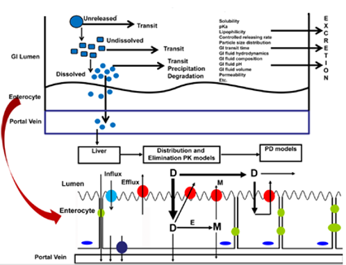 藥物經(jīng)口服吸收后在體內(nèi)吸收情況及在體內(nèi)吸收轉(zhuǎn)運(yùn)過(guò)程如下圖所示: