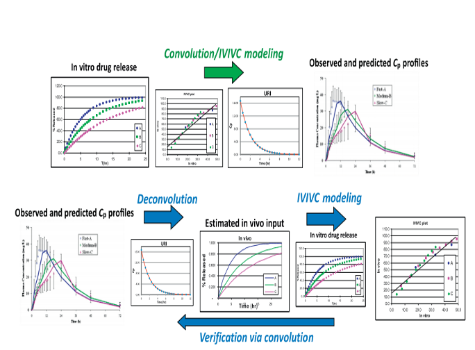 PK模型構(gòu)建:可通過(guò)人體IV數(shù)據(jù),利用反卷積方法計(jì)算PK數(shù)據(jù);或通過(guò)具有快速溶出的口服制劑,獲得處置模型;如無(wú)人體數(shù)據(jù),可利用體外數(shù)據(jù)進(jìn)行預(yù)測(cè),或采用動(dòng)物數(shù)據(jù),進(jìn)行推算。
