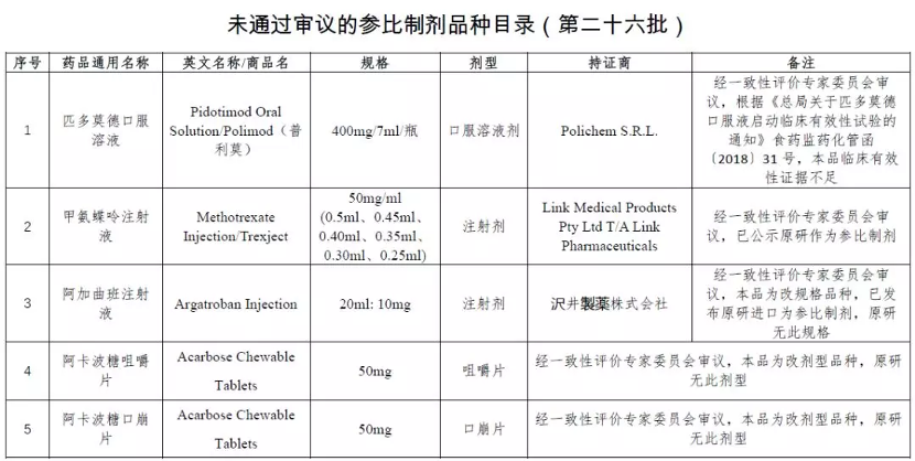 未通過原因:經(jīng)一致性評價專家委員會審議,本品在日本上市時的數(shù)據(jù)基礎有限,病例數(shù)很少,且本品對于國內(nèi)目前該適應癥領域的臨床價值有待進一步論證。