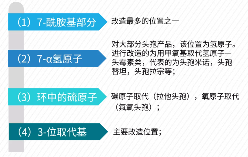 2.對(duì)頭孢菌素類抗生素基本結(jié)構(gòu)的改造