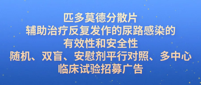 項(xiàng)目名稱:匹多莫德分散片輔助治療反復(fù)發(fā)作的尿路感染的有效性和安全性隨機(jī)、雙盲、安慰劑平行對(duì)照、多中心臨床試驗(yàn)