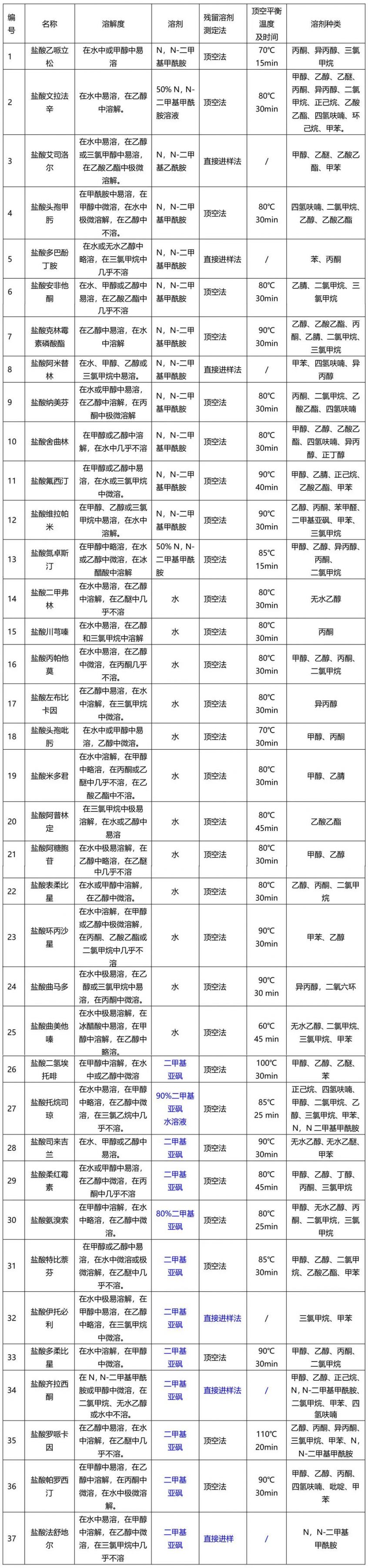 二甲亞砜易分解!鹽酸鹽類原料藥殘留溶劑方法探討(附表:鹽酸鹽品種殘留溶劑檢測信息匯總表)