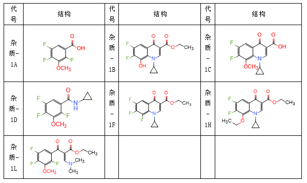 起始原料:1-環(huán)丙基-6,7-二氟-1,4-二氫-8甲氧基-4-氧代-3-喹啉羧酸乙酯