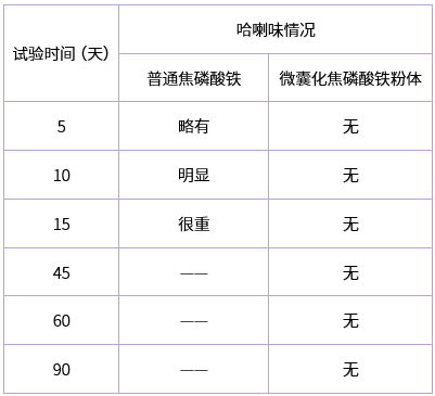 微囊化焦磷酸鐵粉體可大大延長(zhǎng)含植物蛋白類食品出現(xiàn)哈喇味的時(shí)間。