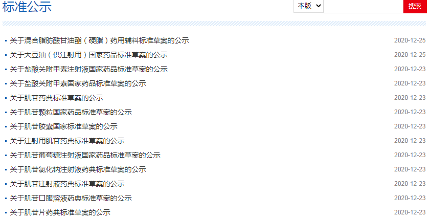 本周制劑及輔料標(biāo)準(zhǔn)公示如下: