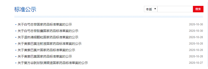 白芍總苷(膠囊)、退熱清咽顆粒、美索巴莫注射液(片)、復方谷胱甘肽滴眼液國家藥品標準草案公示。