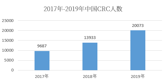 近年來,隨著國內臨床試驗機構數(shù)量的不斷增加,醫(yī)藥外包行業(yè)更是迎來了蓬勃發(fā)展期,CRC從業(yè)者由2017年的9687人增長到2019年的20073人,醫(yī)院機構也開始建立自己的CRC團隊。