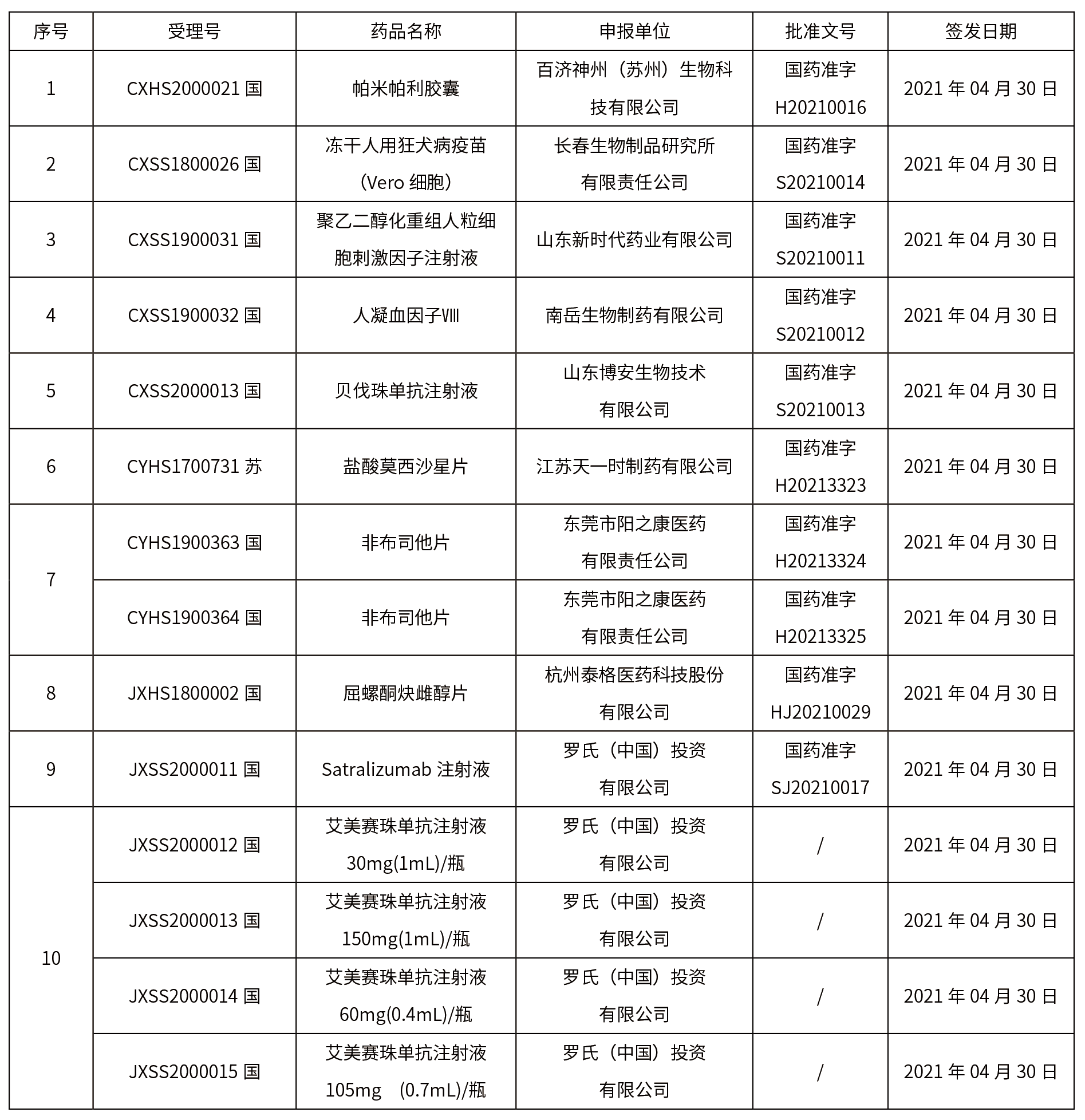 本周共計(jì)10個(gè)品種獲批取得藥品批準(zhǔn)證明文件,其中注射劑品種3個(gè)。