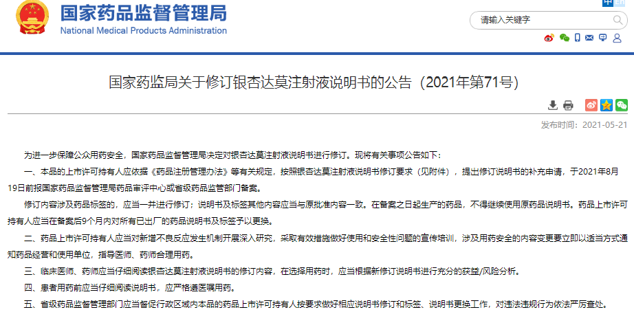 國家藥監(jiān)局關(guān)于修訂銀杏達莫注射液說明書的公告(2021年第71號)