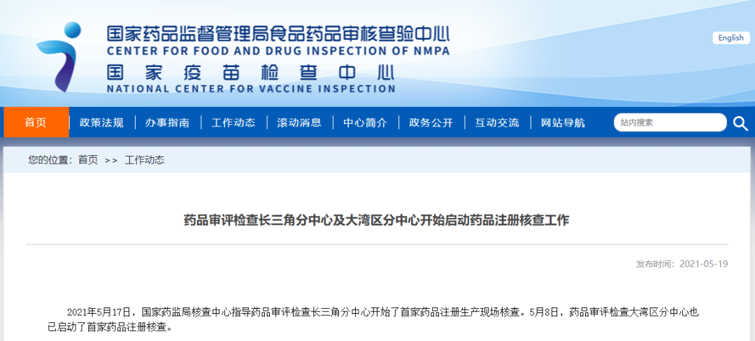 2021年5月17日,國家藥監(jiān)局核查中心指導(dǎo)藥品審評檢查長三角分中心開始了首家藥品注冊生產(chǎn)現(xiàn)場核查。5月8日,藥品審評檢查大灣區(qū)分中心也已啟動了首家藥品注冊核查。
