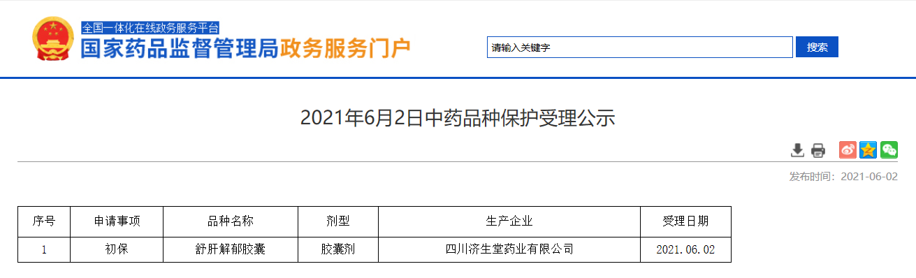 2021年6月2日中藥品種保護(hù)受理公示