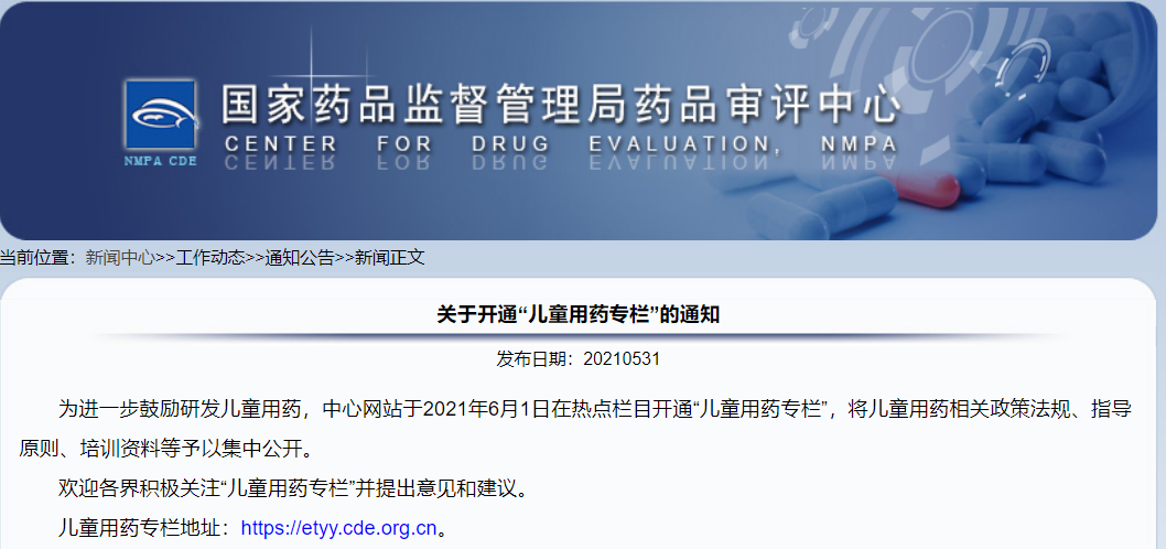 關(guān)于開(kāi)通“兒童用藥專欄”的通知