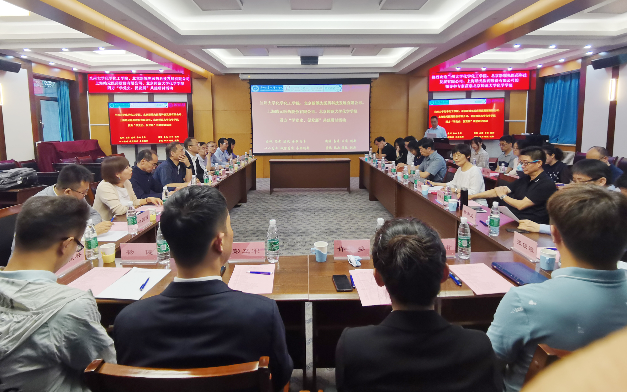 北京師范大學(xué)化學(xué)學(xué)院黨委書記盧忠林教授、院長范樓珍教授,蘭州大學(xué)校長助理和科學(xué)技術(shù)發(fā)展研究院執(zhí)行院長許鵬飛教授、化學(xué)化工學(xué)院院長梁永民教授、功能有機(jī)分子化學(xué)國家重點(diǎn)實(shí)驗(yàn)室主任王為教授,北京新領(lǐng)先醫(yī)藥董事長陶新華先生、副總裁董穎博士,上海皓元醫(yī)藥首席運(yùn)營官彭立軍博士等眾多專家領(lǐng)導(dǎo)出席了此次黨建活動(dòng)。
