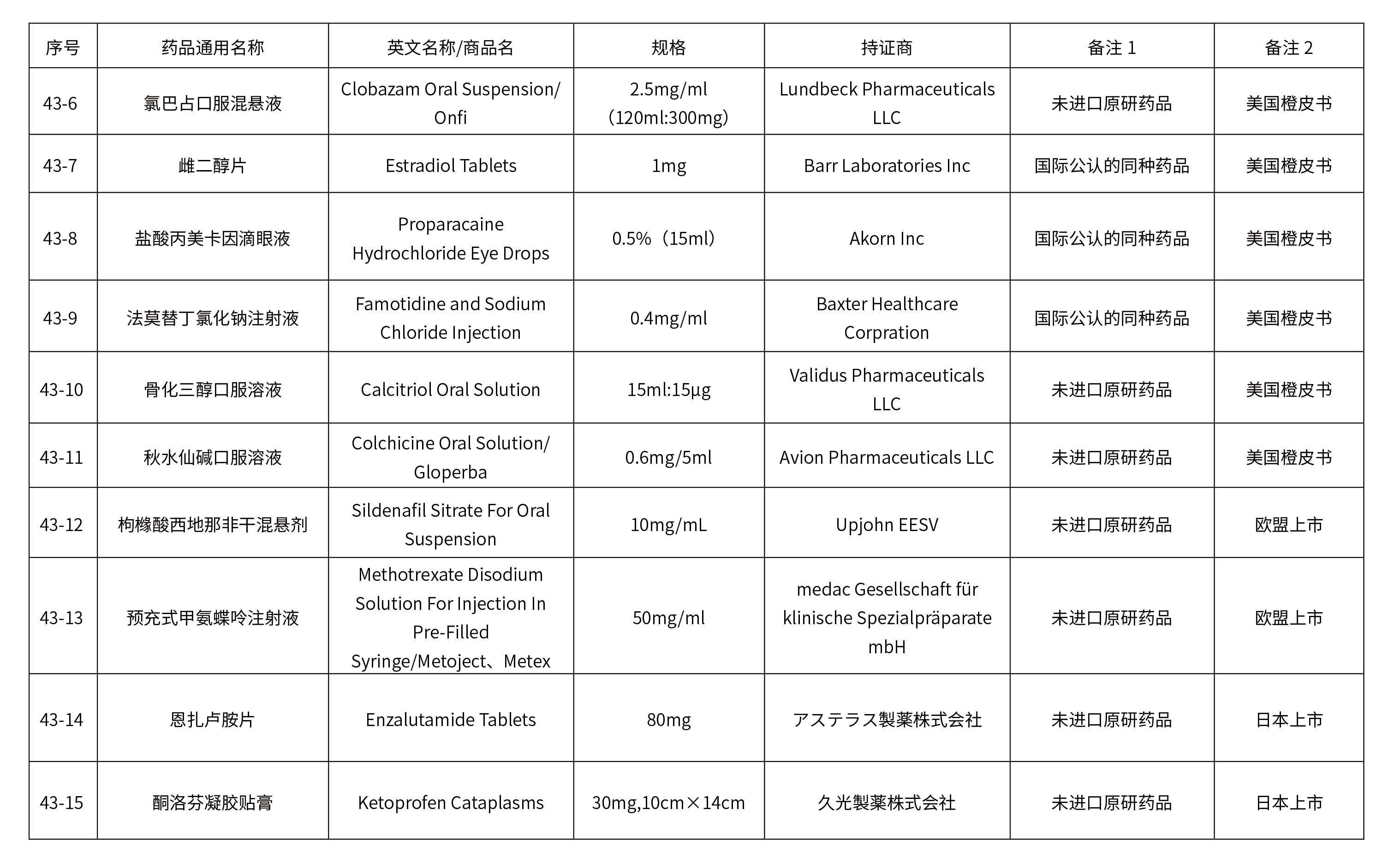 國家藥監(jiān)局關于發(fā)布仿制藥參比制劑目錄(第四十三批)的通告(2021年第51號)