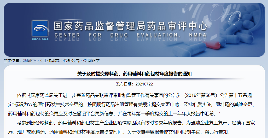 關于及時提交原料藥、藥用輔料和藥包材年度報告的通知