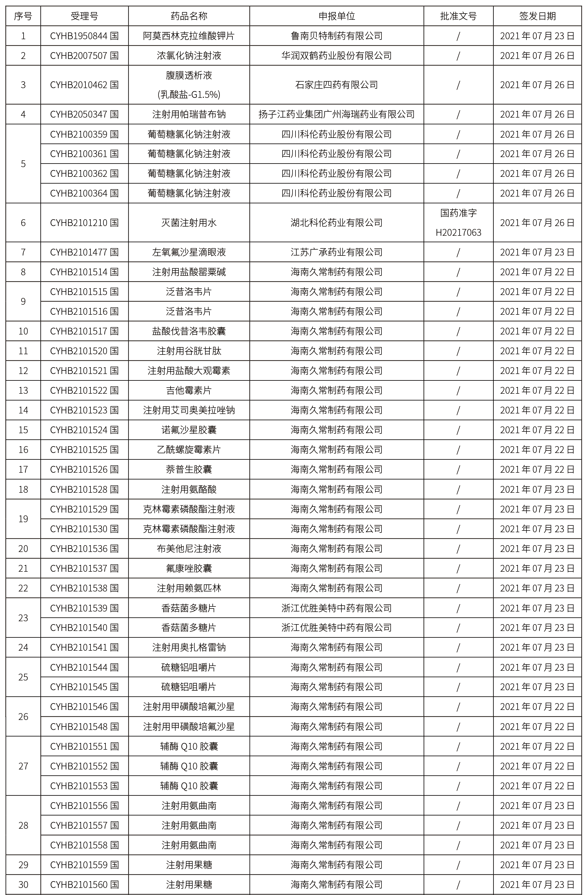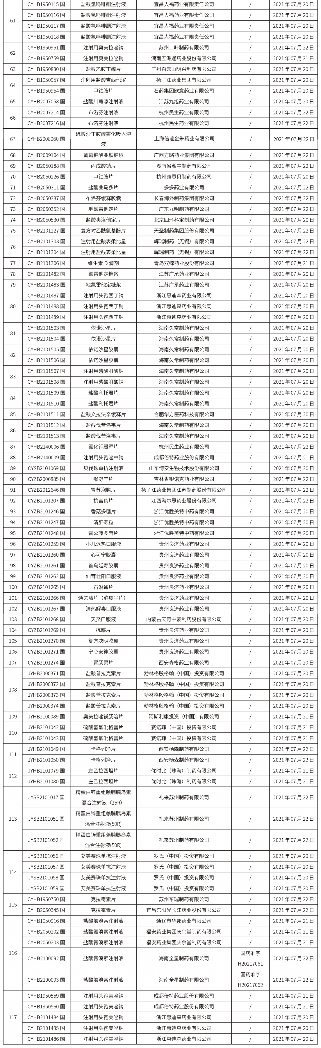 本周共計117個品種獲批取得藥品批準證明文件,其中一致性評價品種21個,注射劑品種37個。