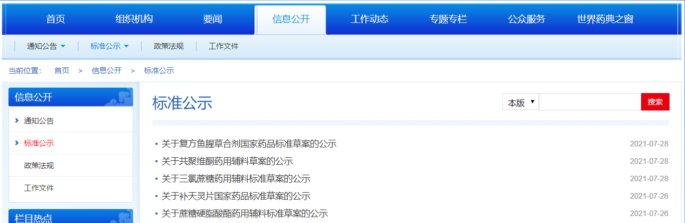 本周共聚維酮藥用輔料、蔗糖硬脂酸酯藥用輔料、三氯蔗糖藥用輔料標準草案公示,復方魚腥草合劑、補天靈片國家藥品標準草案公示。