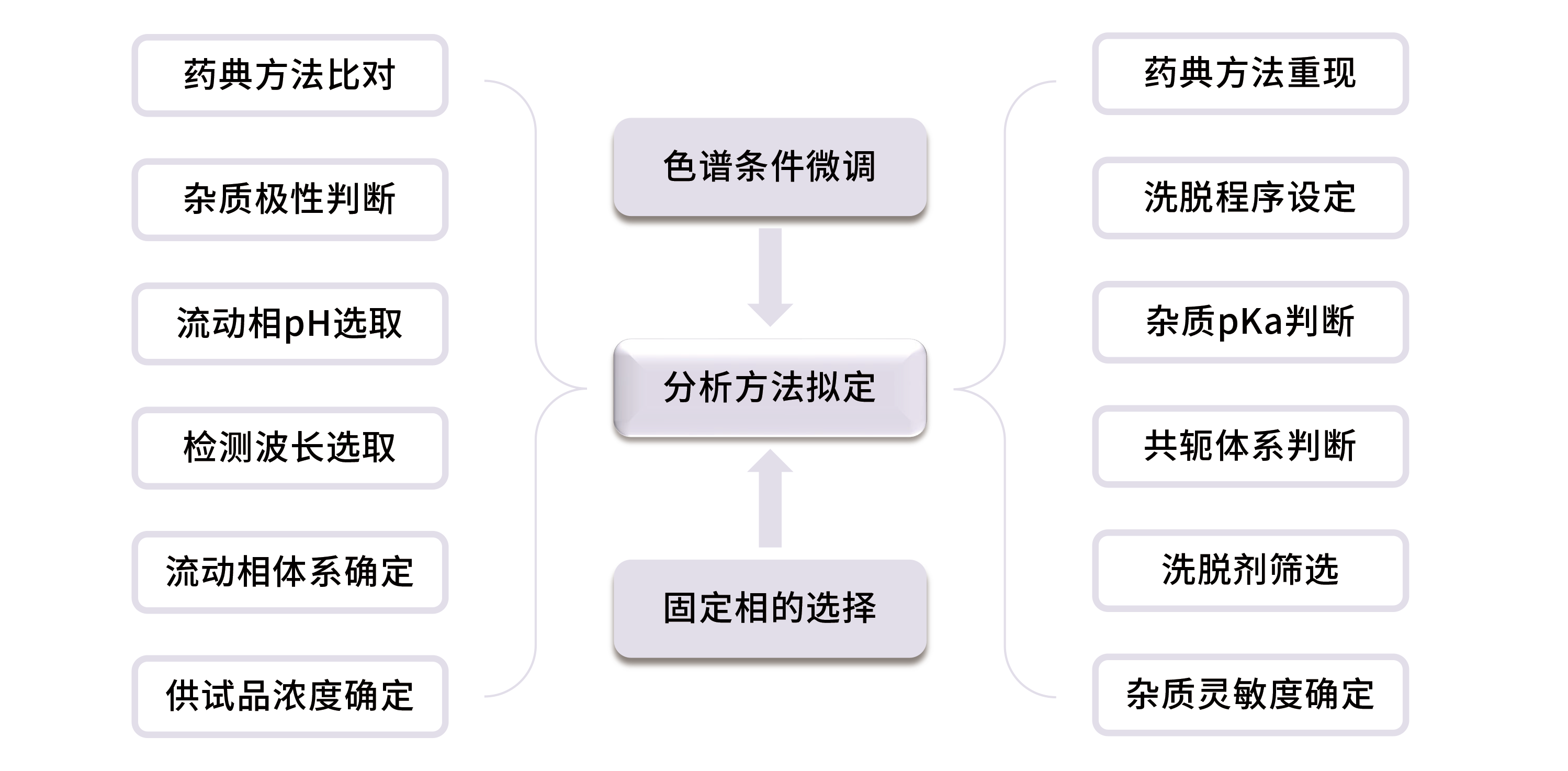 根據(jù)合成工藝路線及降解途徑分析可能產(chǎn)生雜質(zhì)的全面性。
