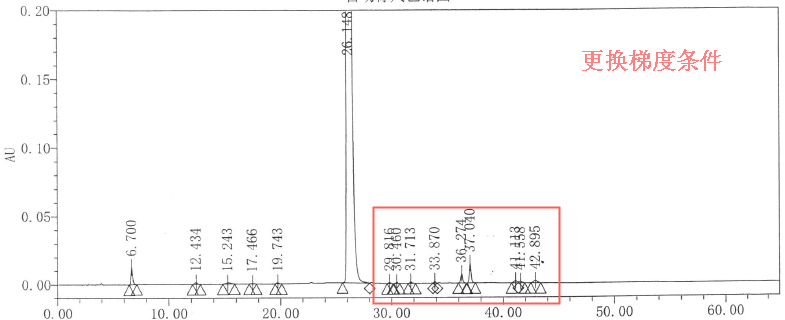 延長梯度洗脫高比例洗脫劑洗脫時間,防止小極性雜質(zhì)漏檢。