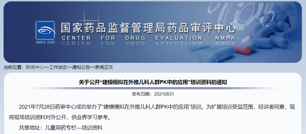 關(guān)于公開“建模模擬在外推兒科人群PK中的應(yīng)用”培訓(xùn)資料的通知