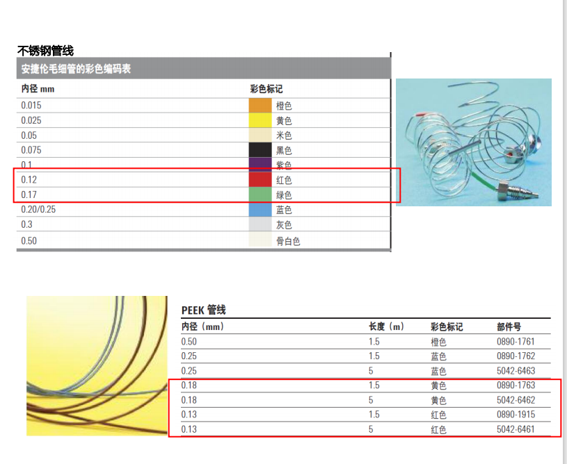 分析型液相系統(tǒng)最常用的規(guī)格是0.12和0.17mm內徑的管線。更換管線時首先要確認當前管線的規(guī)格、并更換相同內徑和長度的管線,否則會造成更換前后結果的不一致,因為管線體積會影響系統(tǒng)柱外體積,從而影響峰形和保留時間。