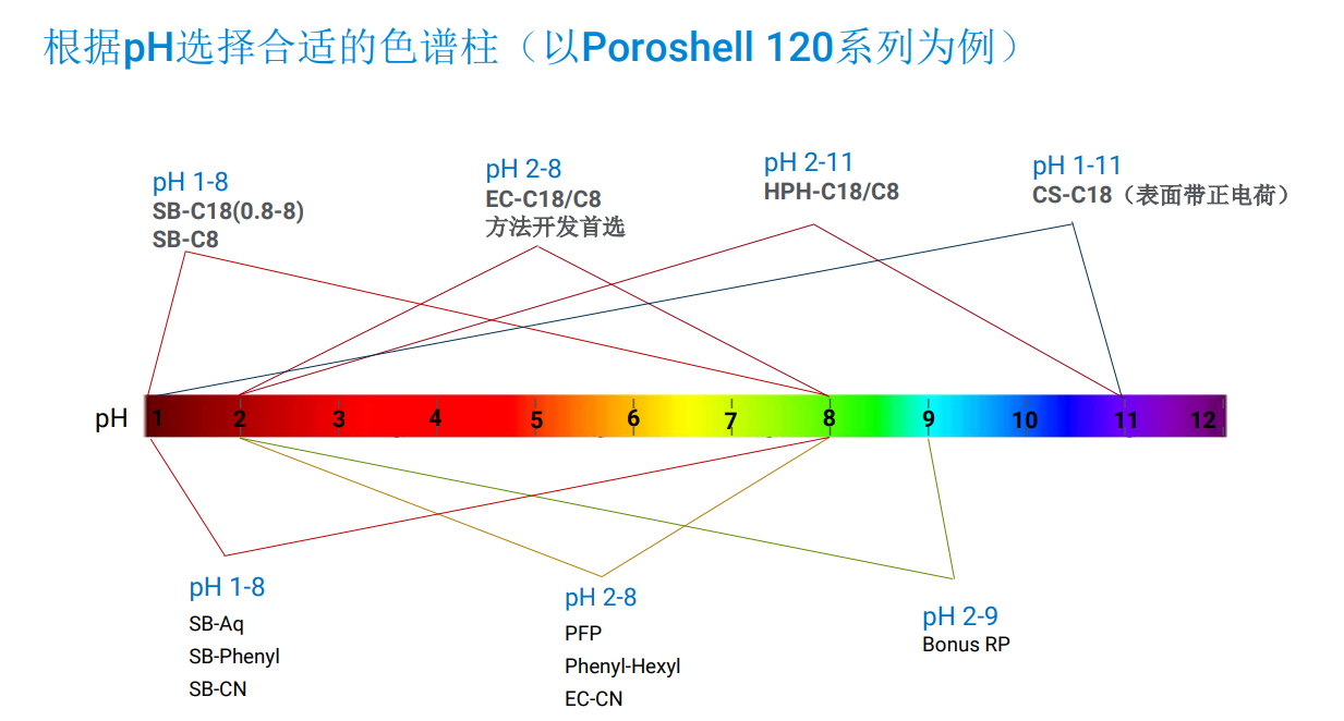 根據pH選擇合適的色譜柱(以Poroshell 120系列為例)