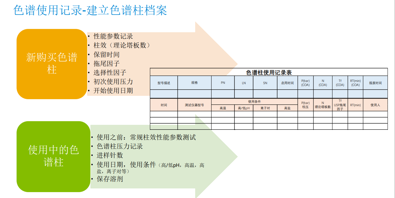 色譜柱的檔案的記錄要點和參考表格如下,實驗室可以根據項目特點進行優(yōu)化: