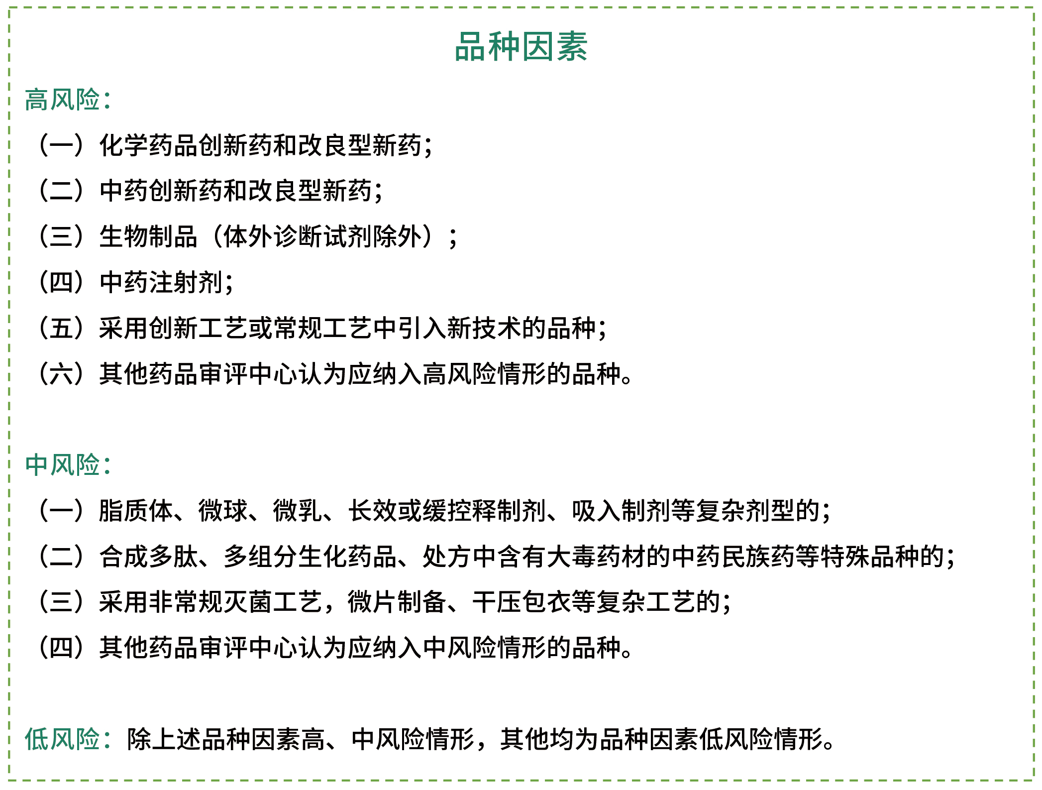 原則上以品種因素和研發(fā)生產(chǎn)主體合規(guī)因素中風(fēng)險情形較高的確定注冊申請風(fēng)險等級,特殊情況的除外。對于補充申請,生物制品和中藥注射劑不納入品種因素高風(fēng)險情形。