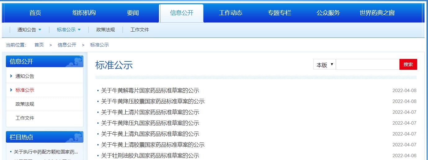本周進行牡荊油膠丸、牛黃上清膠囊、牛黃上清丸、牛黃降壓丸、牛黃上清片、牛黃降壓膠囊、牛黃解毒片7個品種國家藥品標(biāo)準(zhǔn)草案公示。