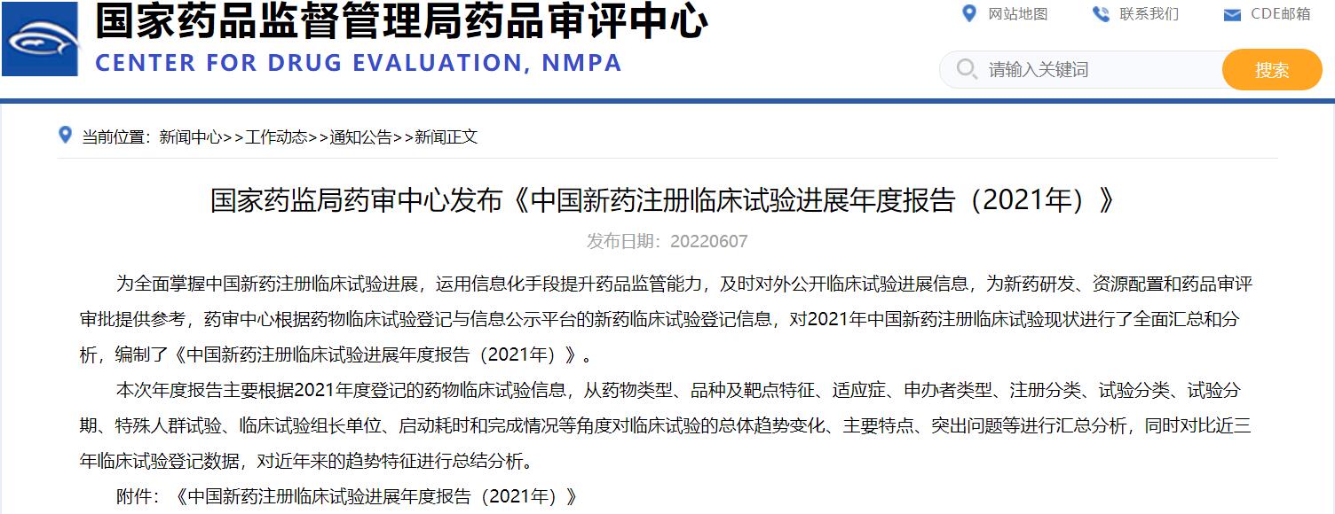 國家藥監(jiān)局藥審中心發(fā)布《中國新藥注冊臨床試驗(yàn)進(jìn)展年度報(bào)告(2021年)》
