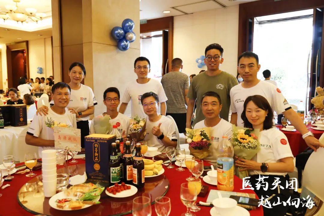 “醫(yī)藥天團”發(fā)起團隊代表、新領先醫(yī)藥總裁高世靜女士和越山向海組委會代表、眾輝智跑商務總監(jiān)尚研先生共同舉杯祝賀“醫(yī)藥天團”英雄們凱旋。接風宴現(xiàn)場舉行了隆重的頒獎典禮以及歡迎儀式,在歡聲笑語中為本次活動畫上了一個完美的句號。
