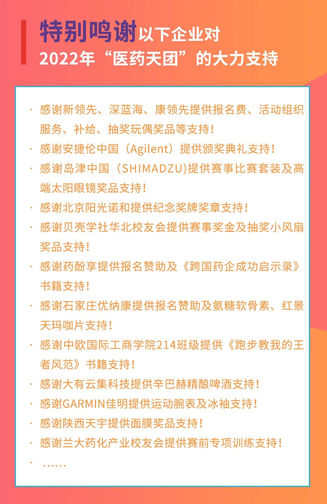 “醫(yī)藥天團”發(fā)起兩年來,受到了越來越多的企業(yè)關注和支持,從服裝、補給、運動裝備、獎牌、暢飲酒水等全方位的贊助支持。在此,我們對所有的贊助商表示誠摯的感謝!