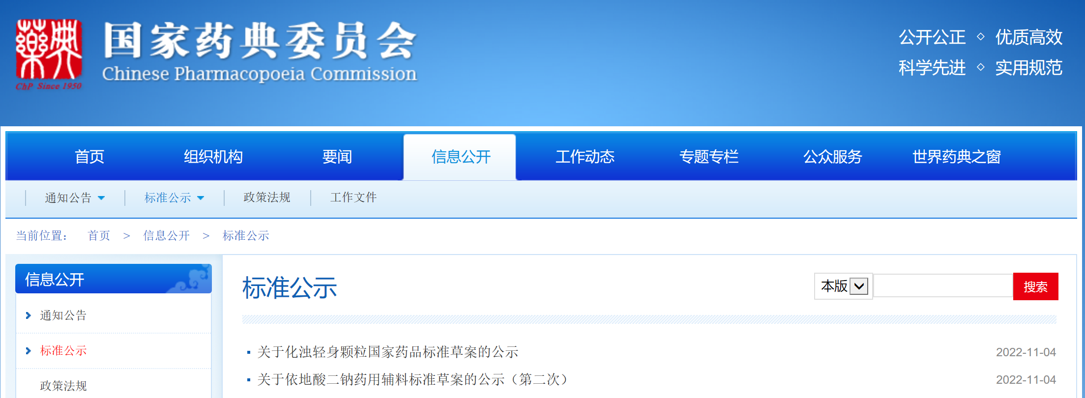 本周發(fā)布化濁輕身顆粒國家藥品標(biāo)準(zhǔn)草案和依地酸二鈉藥用輔料標(biāo)準(zhǔn)草案的公示。