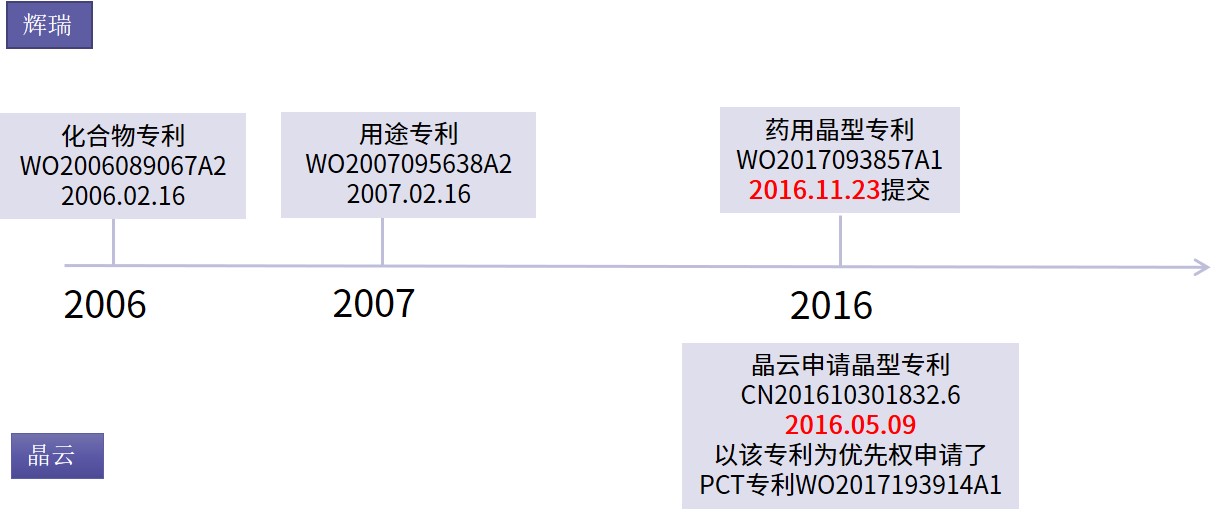 然原研企業(yè)沒有想到的是,中國企業(yè)蘇州晶云在2016年5月9日申請了一項克立硼羅的晶型專利CN201610301832.6,該申請要求保護的晶型中涉及了原研企業(yè)上市產(chǎn)品所使用的的晶型,蘇州晶云以該專利為優(yōu)先權申請了PCT專利WO2017193914A1,該PCT專利進入多個國家地區(qū)。
