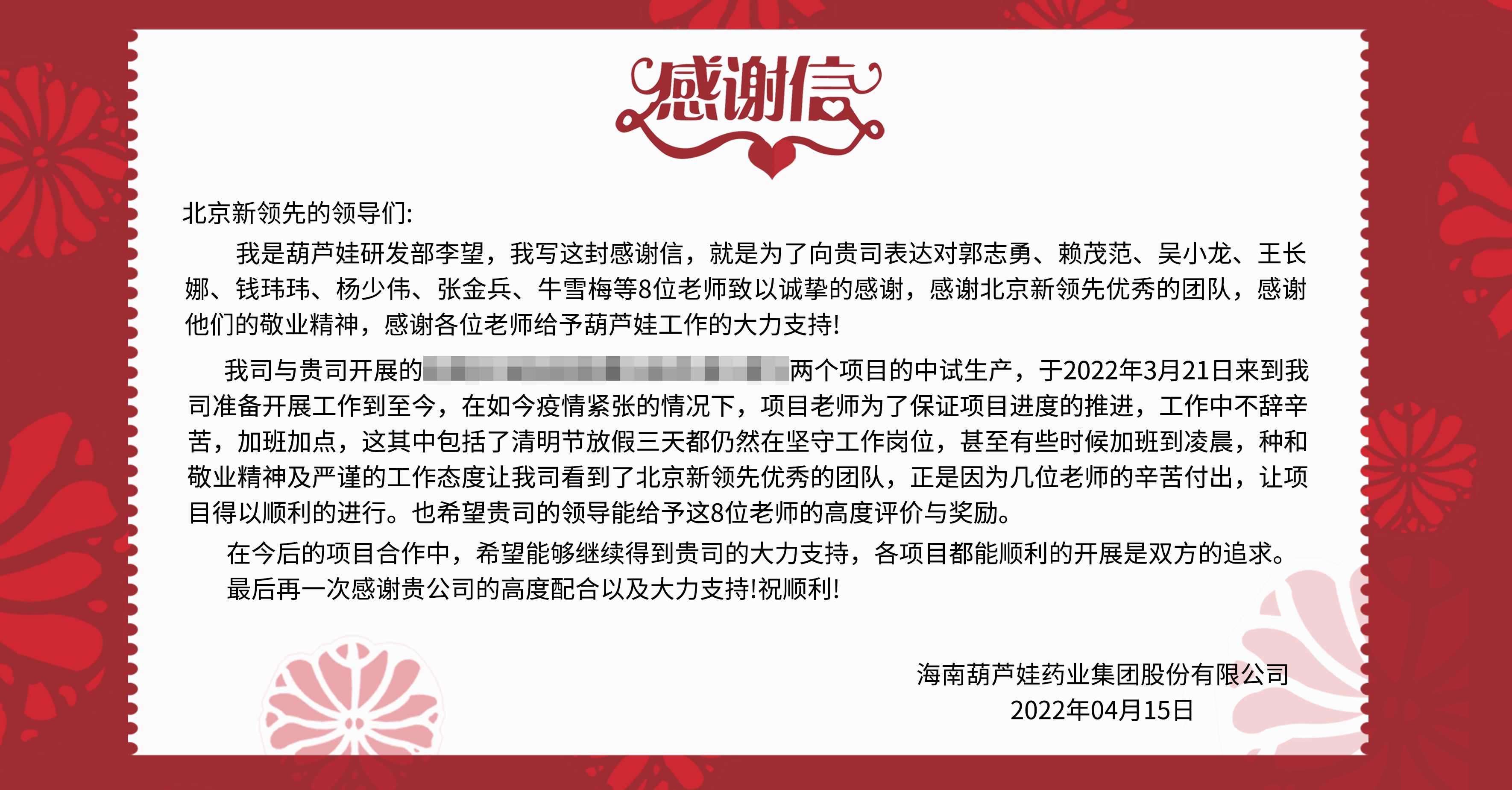 一封封來自客戶的表揚信,讓我們更加堅信“每一份努力都會被看到”,青春是用來奮斗的,每位新領先人始終懷揣“是我,讓中國新藥技術和生產(chǎn)工藝與世界同步”的企業(yè)愿景,在中國大地上探尋青春的價值和人生的答案!