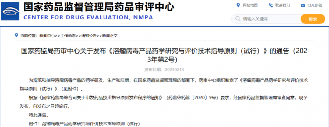 國家藥監(jiān)局藥審中心關于發(fā)布《溶瘤病毒產(chǎn)品藥學研究與評價技術(shù)指導原則(試行)》的通告(2023年第2號)