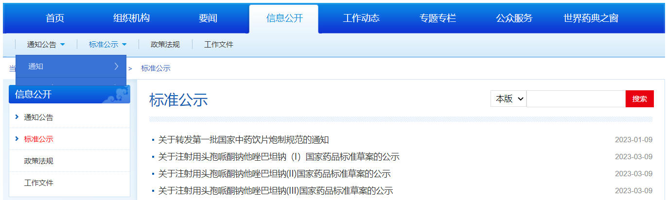 發(fā)布注射用頭孢哌酮鈉他唑巴坦鈉(I)、注射用頭孢哌酮鈉他唑巴坦鈉(II)、注射用頭孢哌酮鈉他唑巴坦鈉(III)國(guó)家藥品標(biāo)準(zhǔn)草案的公示。
