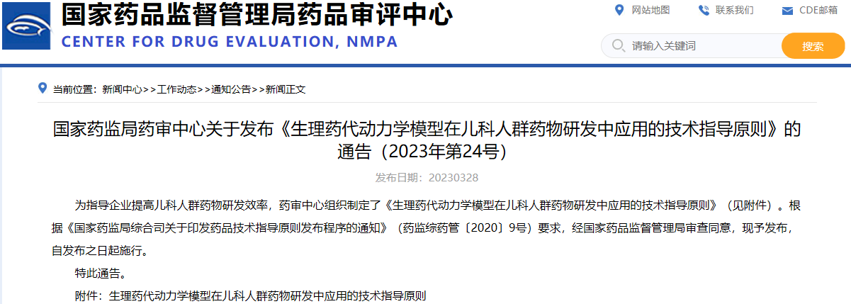 國家藥監(jiān)局藥審中心關(guān)于發(fā)布《生理藥代動力學(xué)模型在兒科人群藥物研發(fā)中應(yīng)用的技術(shù)指導(dǎo)原則》的通告(2023年第24號)